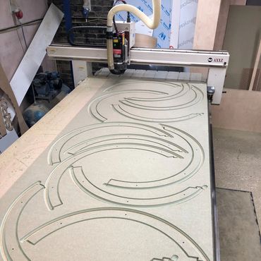 We use cutting edge machinery including a CNC router. This machine not only offers precision cutting, ensuring multiple objects are identical, they also provide an economical solution for the client, as labour intensive tasks are reduced.